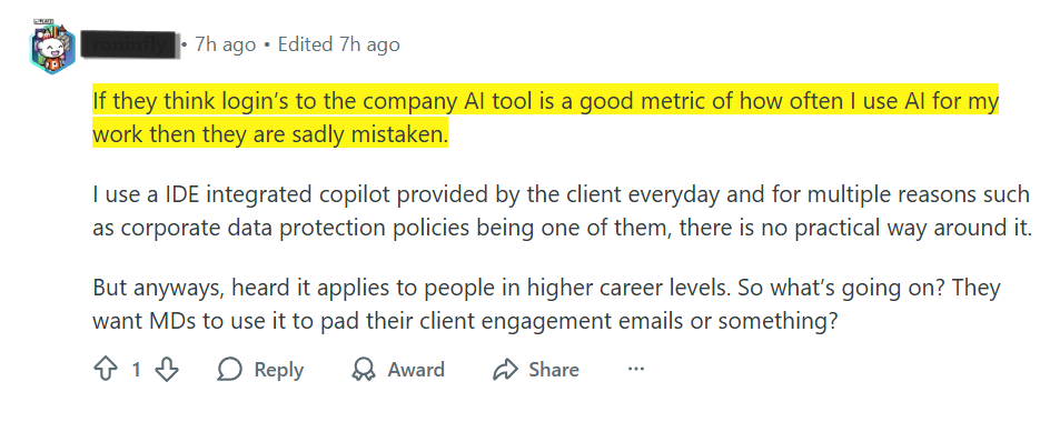 Going forward, AI engagement is expected to become a factor in performance/salary discussions.